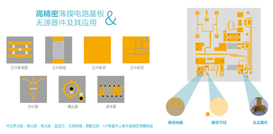 We can fabricates circuits on substrates from As-Fired Alumina,Polished Alumina,Aluminum Nitride,Beryllium Oxide,Fused SilIca,Sapphire,Ferrites,Garnets,and HI-K Dielectrics.